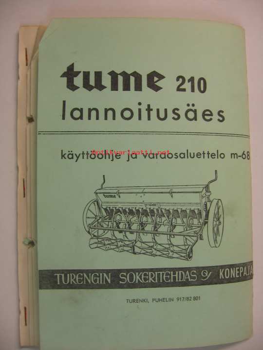Tume 210 lannoitusäes käyttöohje ja varaosaluettelo m-68