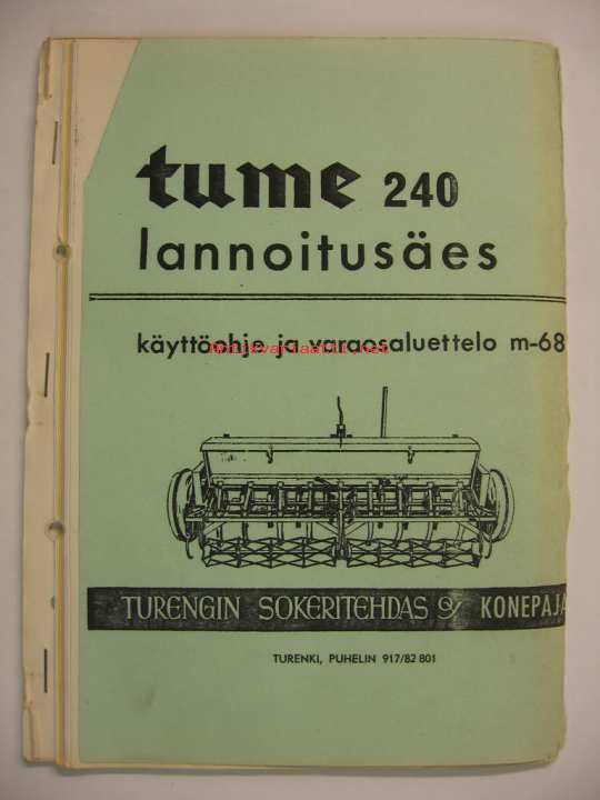 Tume 240 lannoitusäes käyttöohje ja varaosaluettelo m-68