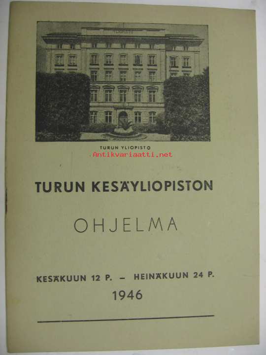 | Saatavilla | 1 kpl | | Julkaisuvuosi | 1946 | | Sivuja | 24 | | Kunto | K3 | | Sidonta/painoasu | Nidottu (pehmeäk.) | | Kielet | Suomi |