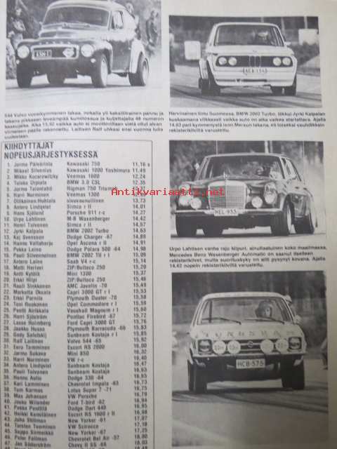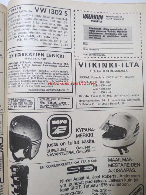 Vauhdin maailma 1975 nr 7 -mm. Kenneth Calenius esittelee sivuvaunut TT:n, paalupaikalla Pentti Airikkala?, Turbo meidän laskuumme, kiitos!, Ruotsin gran prix