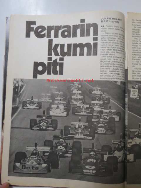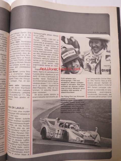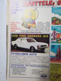 Vauhdin maailma 1975 nr 7 -mm. Kenneth Calenius esittelee sivuvaunut TT:n, paalupaikalla Pentti Airikkala?, Turbo meidän laskuumme, kiitos!, Ruotsin gran prix Ferrarin kumi piti.21 x 29 cm.