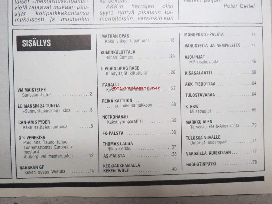Vauhdin Maailma 1979 nr 8 -mm. Drag Race Camaro, Imatra -79, F1 Ranskan GP Turbo-rellu vihelsi kotivoittoon, CAN-AM Spyder NF II - Työkalu amerikkalaiseen malliin, Le Mans 24 tunnin ajo, Chrysler Sumbeam Lotus 2.2 - Tuleva voittaja?.21 x 29 cm.