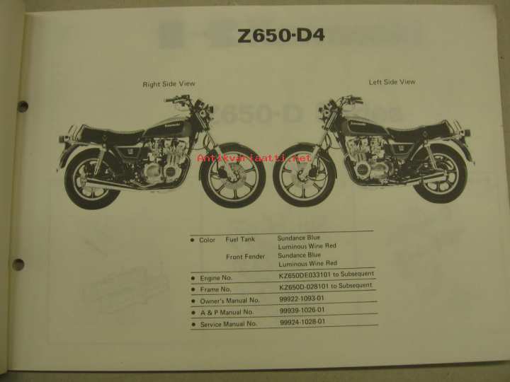Kawasaki Z650-D Parts Catalog European market -varaosaluettelo