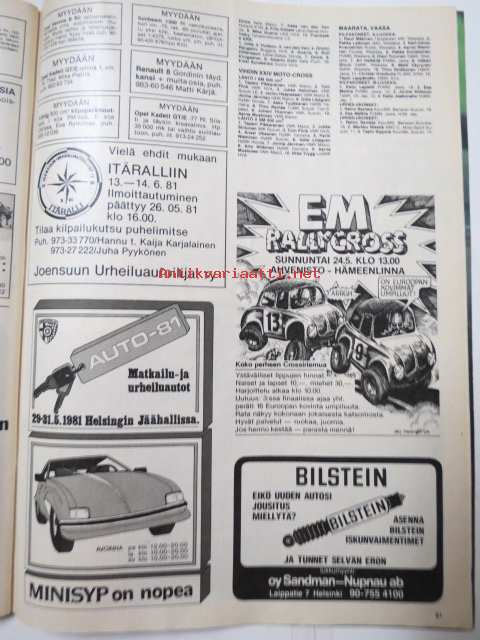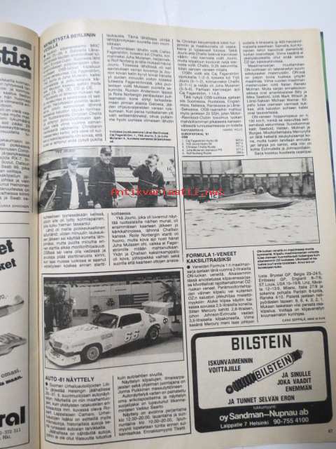 Vauhdin Maailma 1981 nr 6 -mm. FHRA Car Show 1981 helsingin jäähallissa, Rally Csta Smeralda, Drag racing, Indiapolis 500 mailia Johnny Rutherford "Teksasin