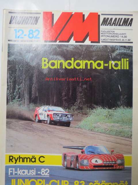Vauhdin maailma 1982 nr 12 -mm. Vm maistelee Porsche 911 ja Honda FT 500, Bandama ralli, Teboil ralli, F1 katsaus 1982, Mitsu Galant Turbo, IFMA -82, VM esittelee