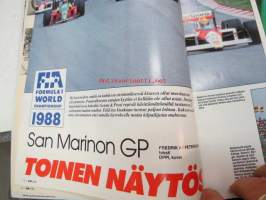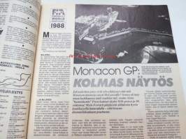 Vauhdin maailma 1988 nr 6 -mm. Formula 1 kasvo Nigel Mansell, Formula 1 Imola ja monaco, FHRA Amrican Car Show, Ralli-SM artukainen ja ahvenisto,F-4 venekausi