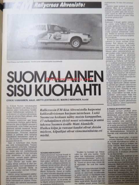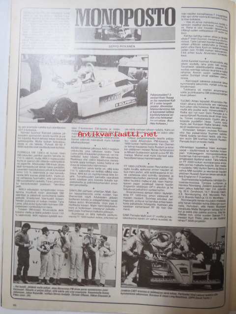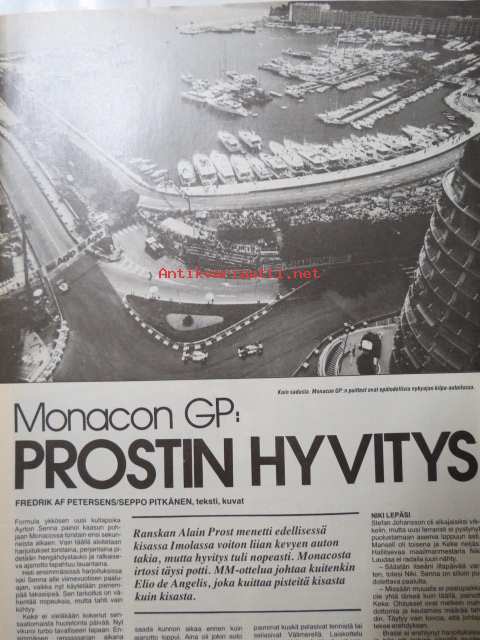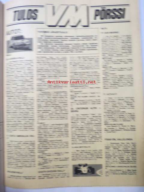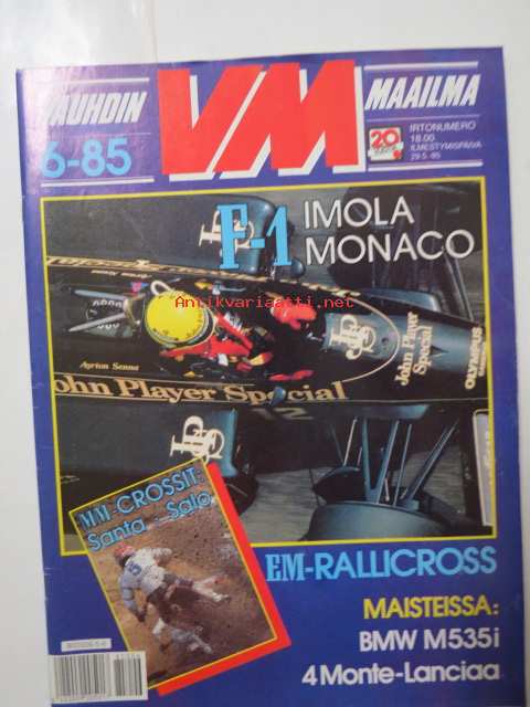 Vauhdin maailma 1985 nr 6 -mm. EM-rallicross Ahvenisto, Formula 1 Monaco ja Imola, MM-road racing Jarama, BMW 535M, Reaktiaikamittari, Yamaha 350 XT, SM-rata Ahvenisto, SM-Drag racin Räyskälä, Motocross MM Ruskeasanta, Peugeot 305 GTX ja BX 19 GT.21 x 29 cm.