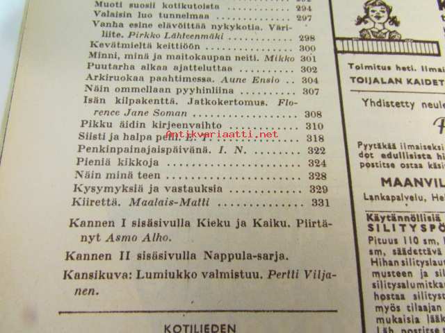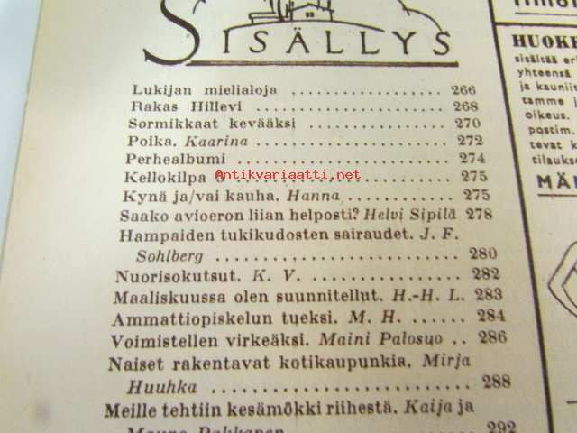 Kotiliesi 1960 nr 5, ( maaliskuu I) kesämökki riihestä, vanha esine elävöitttää nykykotia, vaurasta Seinäjokea