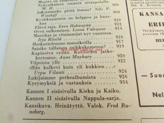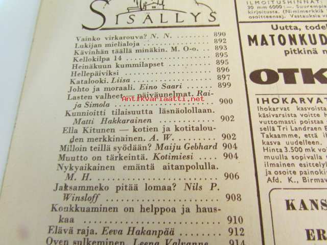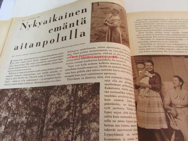 Kotiliesi 1960 nr 14, heinäkuu, nykyaikainen emäntä aitan polulla Esteri Rytilä - Parkano, Ella Kitunen esitellään.