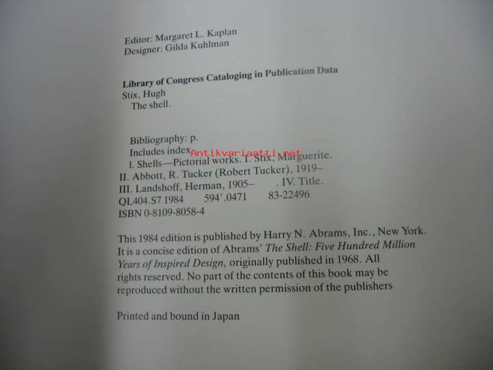 Kaplan Margaret, Abrale Press, 1984Simpukka, meren lahja. Hienoja kuvitus, sekä väri- että mustavalkokuvia.