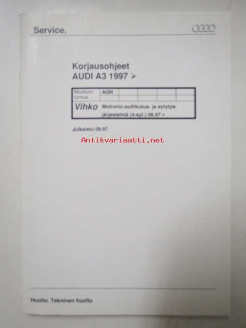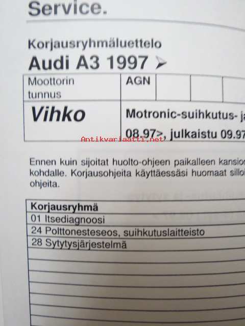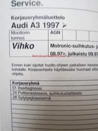 Korjausohjeet Audi A3 1997 -Motronic-suihkutus- ja sytytysjärjestelmä (4-syl.) Moottorin tunnus AGN.