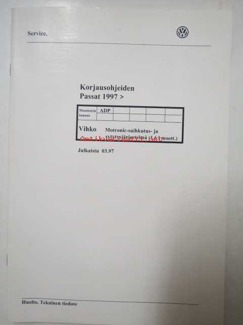 Korjausohjeiden Volkswagen Passat 1997>, Motronic-suihkutus- ja sytyytysjärjestelmä (1.6 l moott.), moottorin tunnus ADP.
