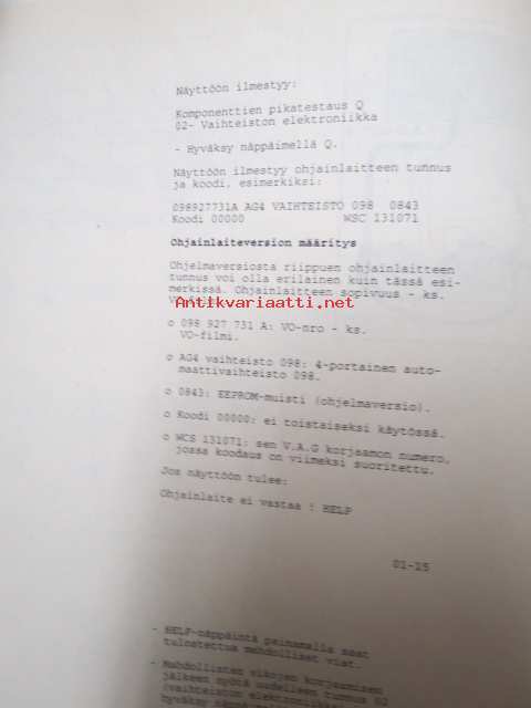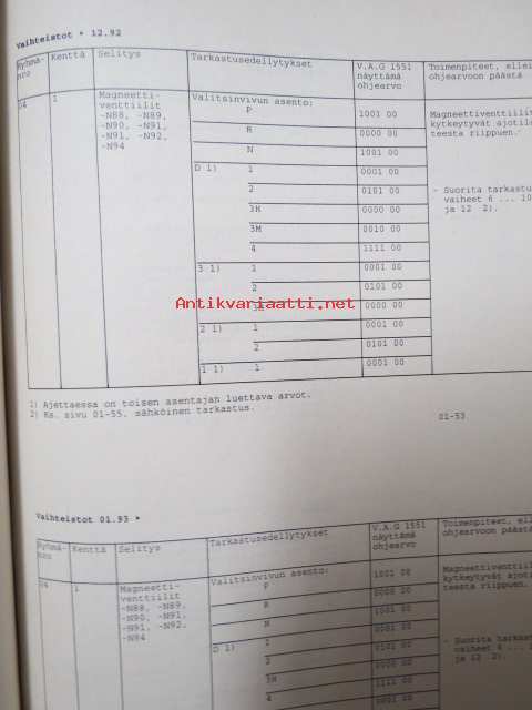 Korjausohjeiden Volkswagen Transporter 1991>, Automaattivaihteisto 098, vaihteiston tunnuskirjaimet AXX, AXW, AXY, ARW, CEU, CEV, CKB, CHZ, CKA, CHY, CFZ, CGA, CGK,