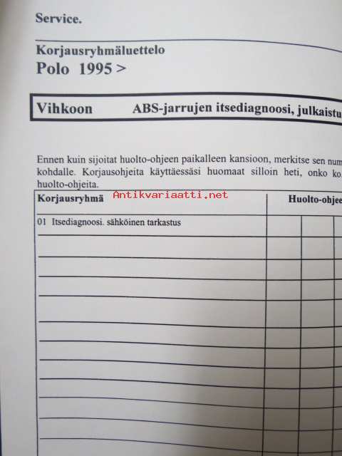 Korjausohjeiden Volkswagen Polo 1995>,ABS-jarrujen itsediagnoosi