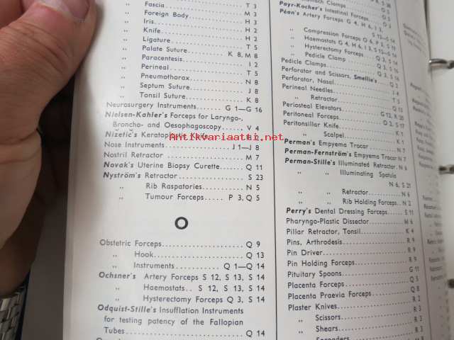 Stille Surgical Instruments Catalogue nr 951 -kirurgisten instrumenttien luettelo