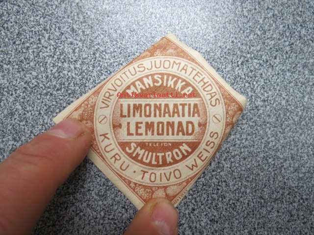 Virvoitusjuomatehdas Toiwo Weiss, Kuru, Mansikka / Smultron Limonaatia / Lemonad (painettu Julius Syren & Co)
