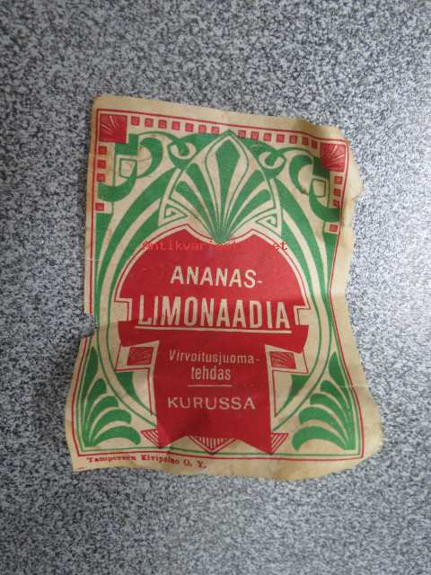 Virvoitusjuomatehdas Toiwo Weiss, Kuru, Ananas-Limonaadia (painettu Tampereen Kivipaino O.Y.) -etiketti