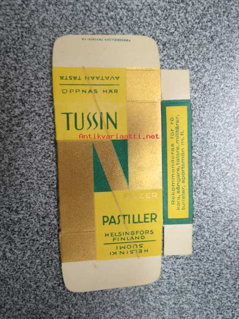 Fazer Tussin -käyttämätön, tyhjä karamelliaski 1930-luvulta