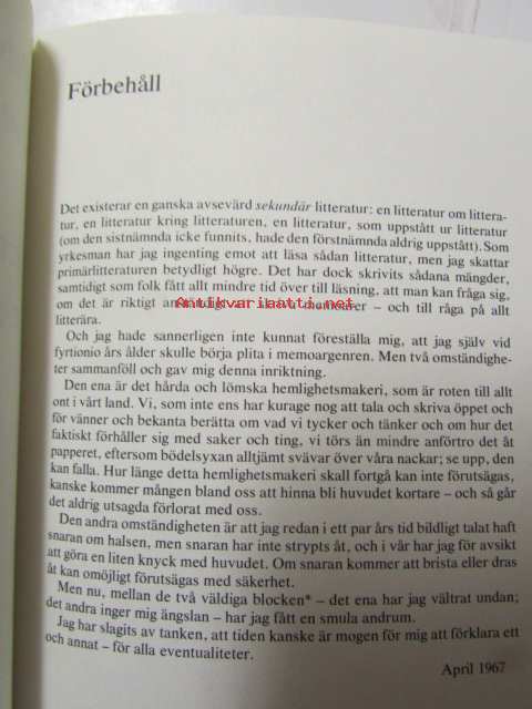 | Saatavilla | 1 kpl | | Julkaisuvuosi | 1975 | | Sivuja | 449 | | Painos | 1. | | Kunto | K3 | | Sidonta/painoasu | Sidottu (kansipaperit) | | ISBN | 91-46-12399-7 | | Kielet | Ruotsi |