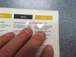 | Saatavilla | 1 kpl | | Sivuja | 2 | | Kunto | K3 | | Sidonta/painoasu | Pienpainate | | Kielet | Suomi, Ruotsi, Saksa, Hollanti, Tanska, Englanti |