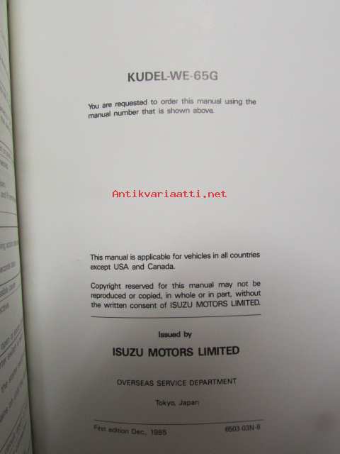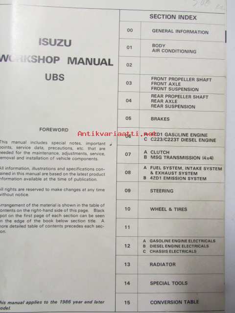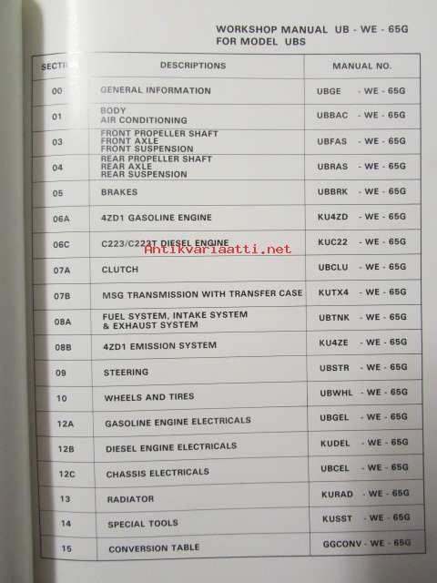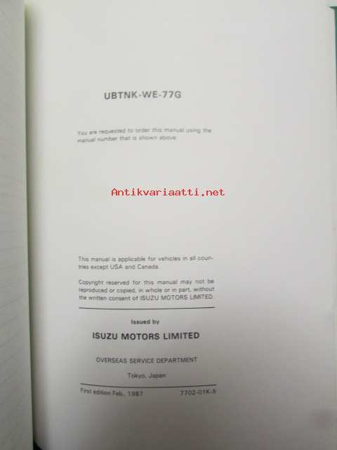 Isuzu Light-duty vehicle Workshop manual 1986 and later model, UBS series No. UB-WE-65G