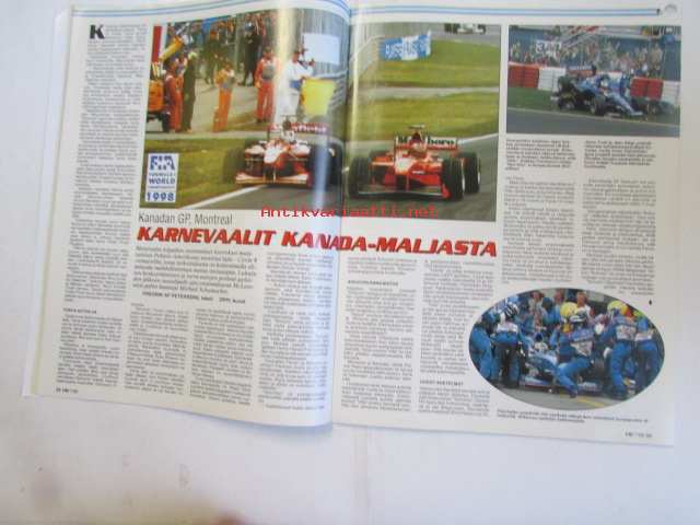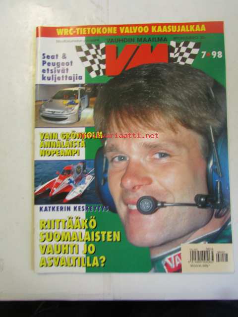 Vauhdin maailma 1998 nr 7 -mm. suomalaiset rallimiehet asvaltilla, Channel 4 ralli, CART madison, West Allis ja Detroit, Rata-SM Alastaro, Helio Castrio-Neves, Rallisprint-SM, Kari Tiainen Mr. Enduro, F1 veneet Tampere, Jacques Villeneuve, Neste Rally Finland, Indy 500, Formula 1 Kanada, Enduro-MM Ranska.21 x 29 cm.