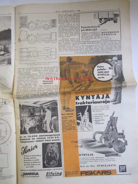 Koneviesti 1962 nr 5 -mm. Viljakuivurit 1962 toimintaperiaatteet kuvakatsauksena, Kolme "kovaa" keksintöä kivenraivausvaunu, vetolaite ja pinotavaran