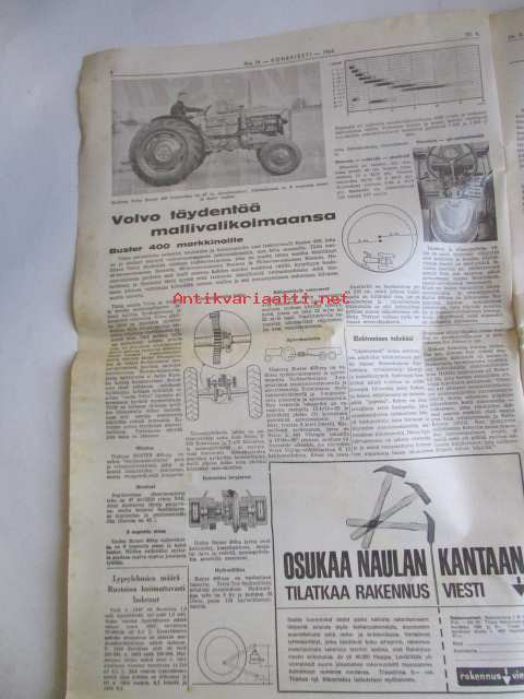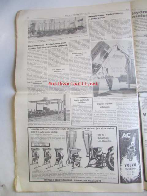 Koneviesti 1964 nr 19 -mm. Volvo täydentää mallivalikoimaansa, korsirehujen varastointiratkaisu, New Yorkin Maailmannäyttely, Perunaviljelijän omavastuu,