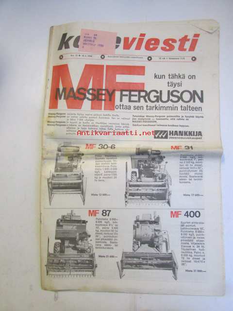 Koneviesti 1964 nr 13 -mm. Yhdistelmäkone mallia Orimattila, Voimakas ja nopea teollistuminen luonteenomaista Ruotsin elinkeinoelämälle, Suomalainen tandemtraktori töissä, Ojalinko työssä Tela-alustainen kaivupyöräkone Heinäkorjuukoneet, Autoillen eurooppaan, uusi työstökonenäyttely avattu, Akktuotannossa omavaraisuuteen Suomessa, koneellinen puiden karsimisasema, Suomalaiset rallimaailman huipulla.