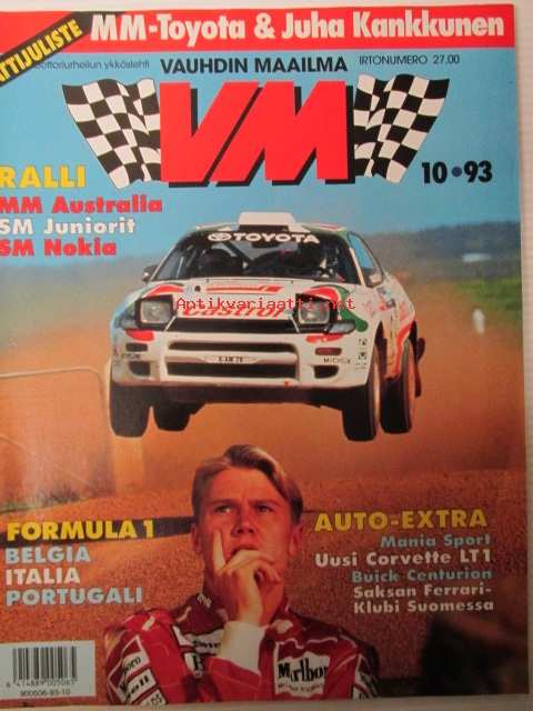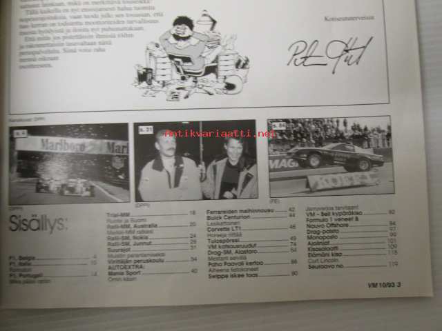 Vauhdin maailma 1993 nr 10 -mm. Formula 1 Belgia, Italia ja Portugali, Buick Centurion, Swippe iskee taas, Ferrareiden maihinnousu, Drag-SM Alastaro, Corvette LT1, VM-Bell kypäräkisa, Elämäni kisa Curt Lincoln, Trial-MM, Suurajot, katso sisältö kuvista tarkemmin.22 x 29 cm.