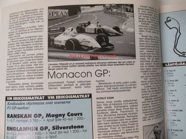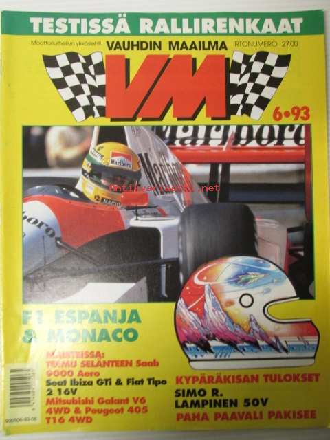 Vauhdin maailma 1993 nr 6 -mm. Formula 1 Espanja ja Monaco, uutta rallitekniikkaa Subaru Skoda Rellu Audi, Suomalainen ruisku, VM rengastesti, Ralli SM pohjanmaa,