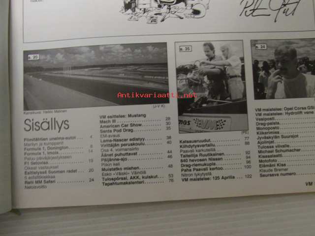 Vauhdin maailma 1993 nr 5 -mm. Formula 1 Donington ja Imola, Filmitähtien unelma-autot, Ralli-MM Safari, Mustang mach III, American Car Show, Drag riemukupla, Opel Corsa GSi, Hydrolift vene, Michael Schumacher, Jyväskylän suurajot, 840hv Nissan, Taiteilija Ruutikainen, Santa Pod Drag, Lama-Nascar edistyy, katso sisältö kuvista tarkemmin.22 x 29 cm.