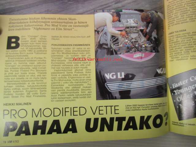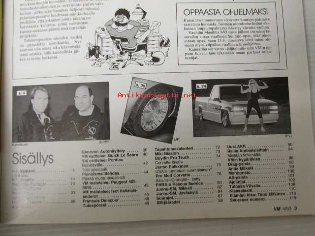 Vauhdin maailma 1993 nr 4 -mm. Formula 1 Kyalami ja Brasilia GP, FK-paketti, Ralli-SM iisalmi, Geneven auonäyttely, Buick Le Sabre, Pontiac Bonneville, Miki Biassion, Ralli Arabialaisittain mistään tinkimättä, Jarno Pulkkinen tunnetuin suomalainen USA, Pro Mod Corvette, Peugeot 405 Mi 16, FHRA:n Rescue Service, katso sisältö kuvista tarkemmin.22 x 29 cm.