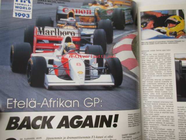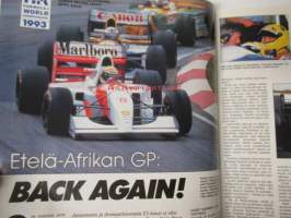 Vauhdin maailma 1993 nr 4 -mm. Formula 1 Kyalami ja Brasilia GP, FK-paketti, Ralli-SM iisalmi, Geneven auonäyttely, Buick Le Sabre, Pontiac Bonneville, Miki