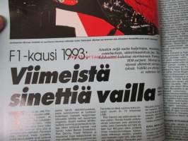 Vauhdin maailma 1993 nr 2 -mm. Formula 1 Asiaa, Ralli-MM monte Carlo, MP-93 Nayttely, Tuomo forsellin V-Max, Jari Suhosen SuperBike, Pontiac Firebird, T/A,