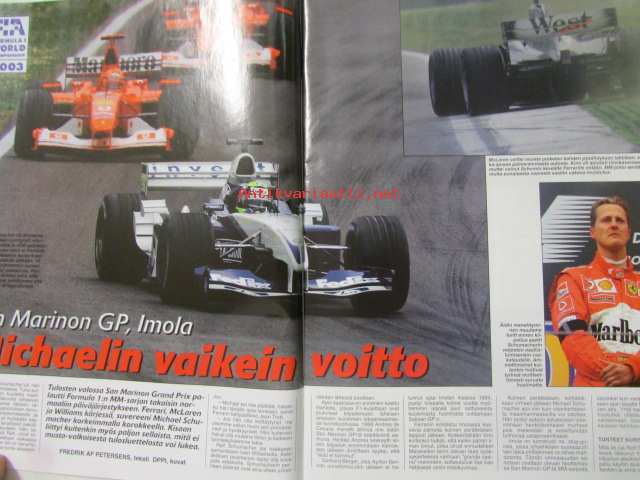 Vauhdin maailma 2003 nr 5 -mm. Formula 1 Brasilia ja San Marino, Kuorma-autojen FIA Cup 2003, Rata-SM 2003, FK-EM 2003, RR-MM Japani, Ford Focus WRC03, American Car