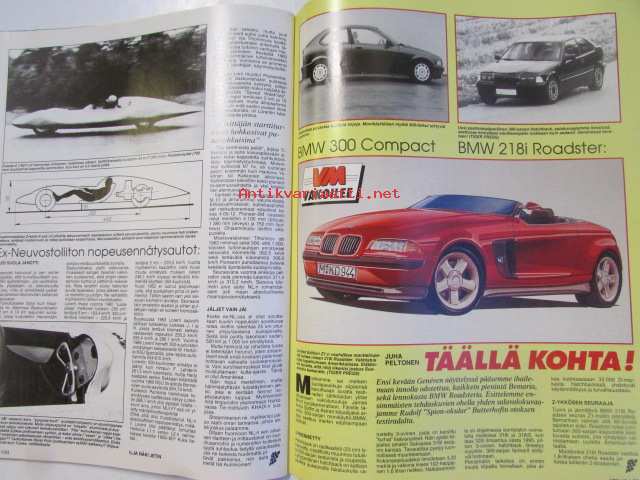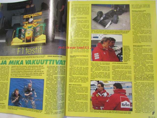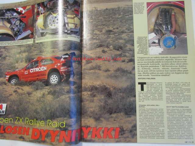 Vauhdin maailma 1994 nr 1 -mm. JJ Lehdon Benettonin ja Mika Häkkisen McLaren testit, Salosen Citroen ZX Rallye Raid - Salosen dyynitykki, Coupe Fiat, Porsche 911