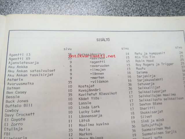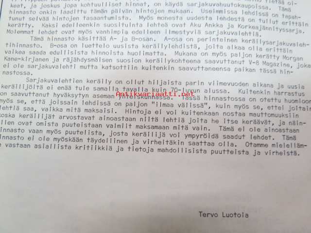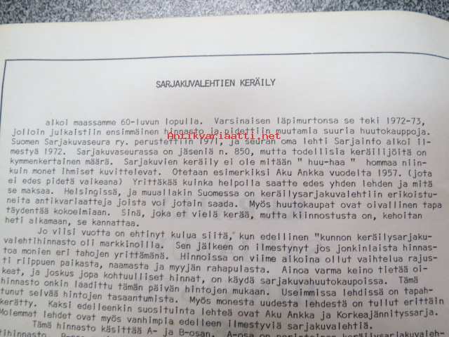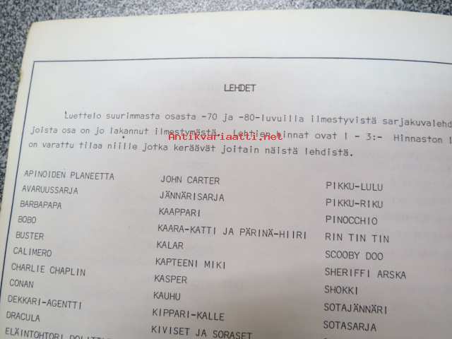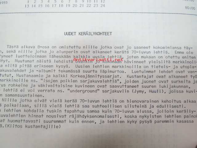 Keräily sarjakuva kuvalehti hinnasto 1981