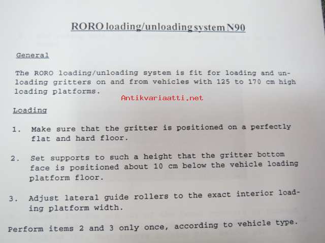 N90 gritter roro loading / unloading platform User´s manual -lastauslaitteen käyttöohje englanniksi