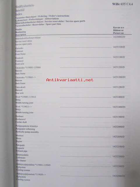 Wille 655c varaosaluettelo, reservdelskatalog, spare parts list, valmistenumerosta 119001 eteenpäin, tillverkningsnummer, production number