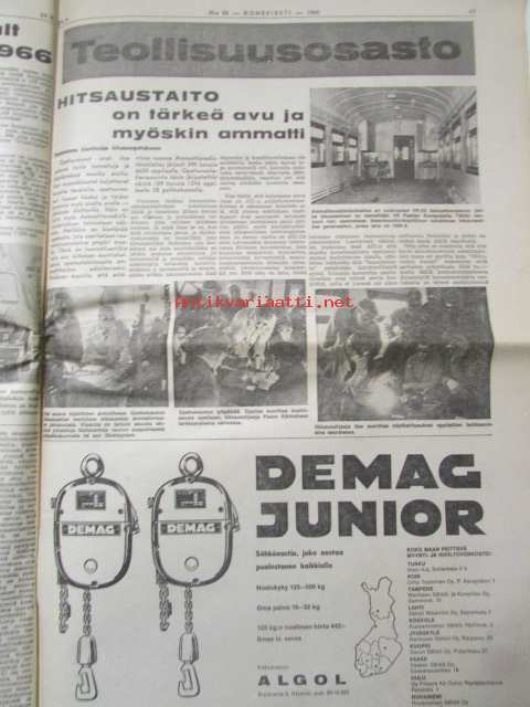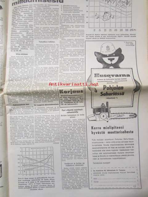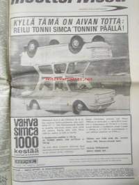 Koneviesti 1965 nr 20 -mm. Moottori alas ja muotoilu esiin, Elementtirakenteinen juontolaite ja kuormaajasarja, Ruisvehnä - tulevaisuuden viljalaji, Sähkömoottori ja -laitteet, Raskaat ja kevyet traktorit työssä, sopivatko traktorin voimansiirron välityssuhteet tarkoitukseensa, melusta ja sen mittaamisesta, kotimainen Nupe-nosturi, Moottorisahojen melu ja tärinä ammattitaudit, Moottoriviestin kestotesti, itsekulkeva kaatovaunu, hydrauliset kaivuukoneet, katso kuvista tarkempi sisältö.