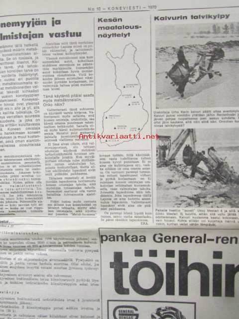 Koneviesti 1970 nr 10 -mm. Lehmät liukuhihnalla, Emakot häkeissä ja porsaat pattereissa, Kasvinsuojeluruiskun kunnostus, Silppurit tekniset tiedot ja kuvat,