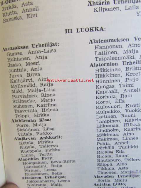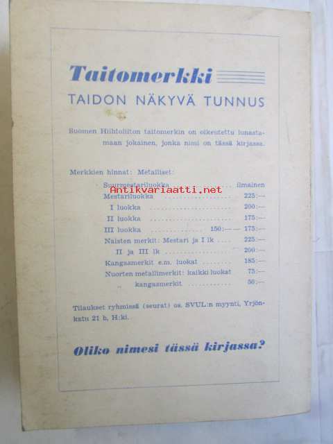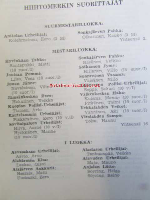 Taitomerkkisuoritukset - Suomen Hiihtoliiton luokitteluluettelo 1957