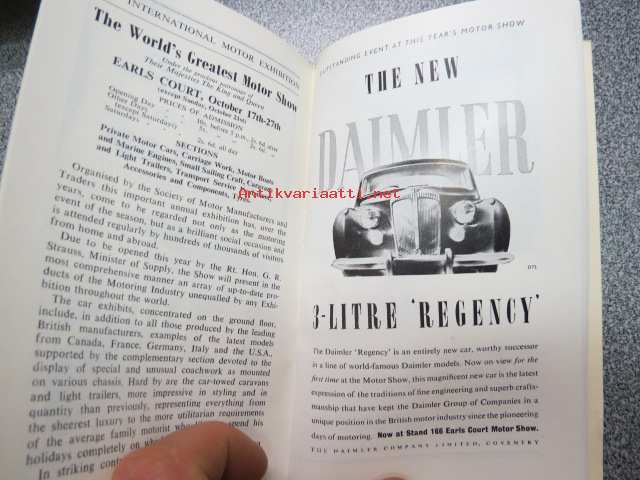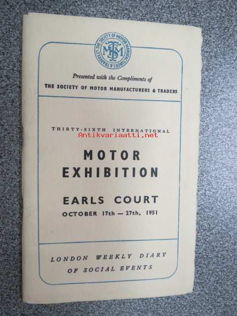 36th International Motor Exhibition, Earls Court, October 17th-27th, 1951 / London weekly diary of social Events -Lontoon kansainvälisen autonäyttelyn esittely ja