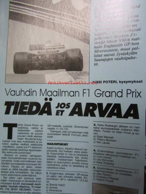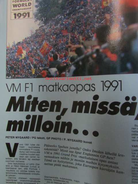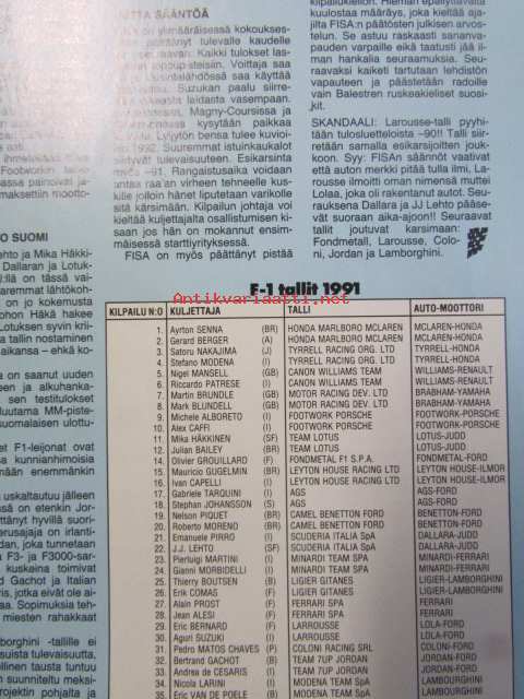Vauhdin Maailma 1991 nr 3 -mm. Formula 1 kausi 1991 nyt on tosi kyseessä, F1 matkaopas ja lukija kilpailu, Ralli-MM Ruotsi ja Monte Carlo,Ralli-EM hankiralli, Los