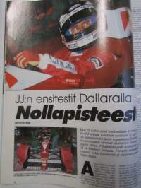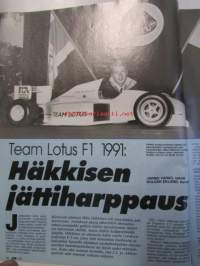Vauhdin Maailma 1991 nr 1 -mm.Formula 1 Mika Häkkinen, Tunturi opas, USA -91 jenkkiraudat tulevat, JJ Lehdon Dallara testit, Shaahin stressilelu Maserati, USA Drag