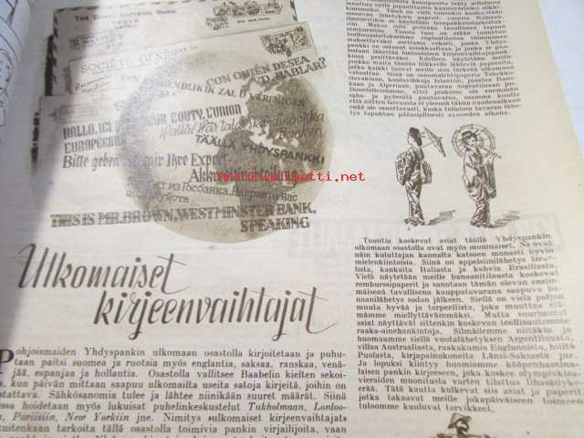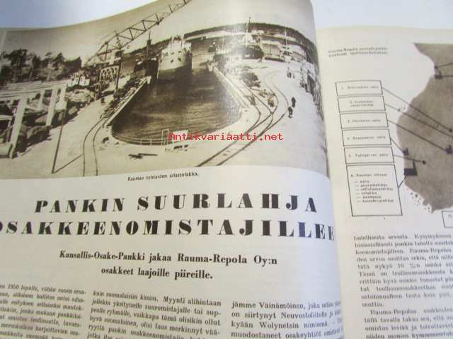 Suomen Kuvalehti 1952 nr 11, (pankin suurlahja osakkeenomistajilleen (Kansallis-Osake-Pankki jakaa Rauma-Repola Oy:n osakkeet laajoille piireille), Mika Waltari: