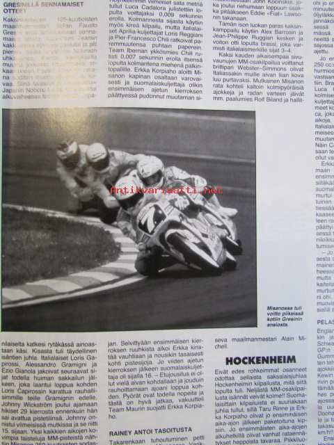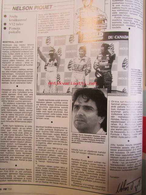 Vauhdin Maailma 1991 nr 7 -mm. Formula 1 Kanada GP, Juan-Manuel Fangio 80v, Drag SM ja PM, Motocross SM Hyvinkää, Road Racing-MM, Kim LaHaie kauniimman sukupuolen