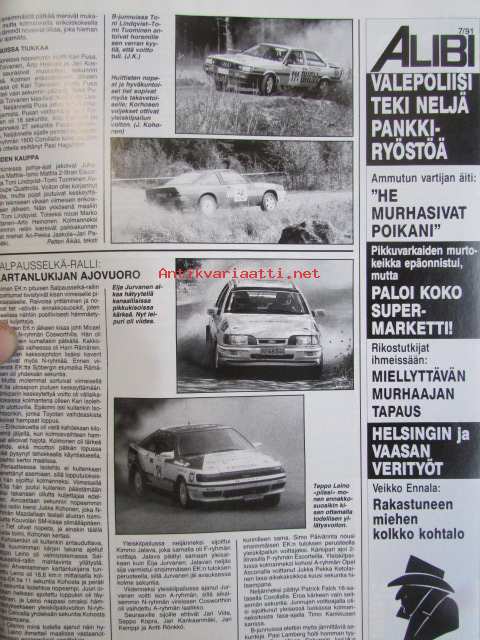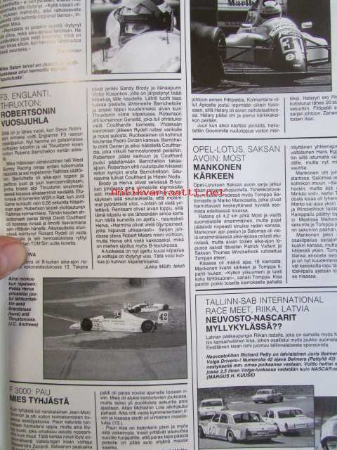 Vauhdin Maailma 1991 nr 7 -mm. Formula 1 Kanada GP, Juan-Manuel Fangio 80v, Drag SM ja PM, Motocross SM Hyvinkää, Road Racing-MM, Kim LaHaie kauniimman sukupuolen mekaanikko USA:sta, Renault Clio 16v, Tampereen Hot Rod Show, Jaquar XJS V12 Twin Turbo, BOmota TESI, Enduro-MM, Indy 500.21 x 29 cm.