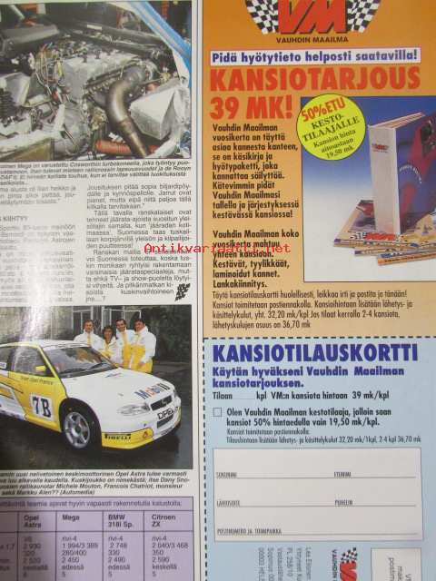 Vauhdin Maailma 1995 nr 1 -mm. Formula 1 vuosi 1994, Michael Schumacher miten voitin mestaruuden, Camel Trophy, opel Astra Sport, Rover turbo coupe, Ford-33 coupe,